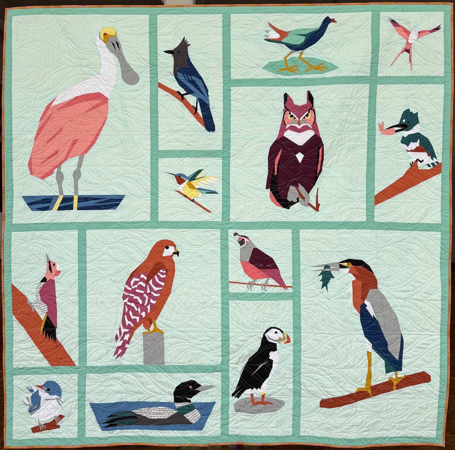 A 14-block avian FPP block of the month, designed by Manderley Makes and myself! Learn more about this fun project below.